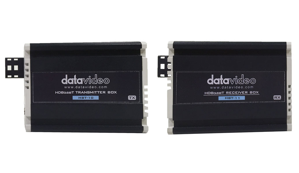 Datavideo’s new HDBaseT Kit allows integrators to save time and money when installing cameras. The kit includes the HBT-10 transmitter box and HBT-11 receiver box which will allow you to send power, control, uncompressed video, and tally all from one Ethernet (Cat6) cable. Imagine only needing one cable from your camera to the switcher without long multiple cable runs, now you can with the HBT-Kit from Datavideo.
