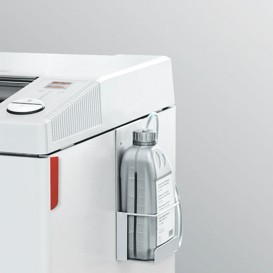 Its Safety Protection System has a transparent shield which keeps the fingers safe while shredding. Destroyit 2604CC is environment friendly; switches to power save mode after one inactive hour. Automatic On/off and oiling also add efficiency to the overall process.