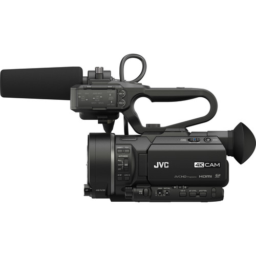 A small form factor, Super-35mm-sized, CMOS, 4K sensor and MFT interchangeable lens mount are just the beginning when discussing JVC’s GY-LS300 4KCAM Handheld S35mm Camcorder. The GY-LS300 is part of JVC’s 4KCAM line of cameras, which can record 8-bit 4:2:2 HD Signals at up to 60P at 50 Mb/s. This camcorder supports dual codec recording, allowing to capture two different codecs, .mov and AVCHD, simultaneously to its dual SDHC/SDXC media card slots using optional media cards. The camcorder incorporates 3G-SDI and HDMI outputs, supporting 4K output over the HDMI out.