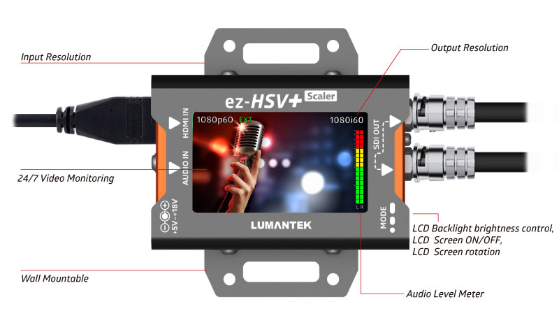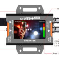 Now you can monitor HDMI video with ez-HSV+. Features you can check are audio bar, incoming resolution and scaled out resolution. The ez-HSV+ comes with the capability to embed external audio as well to give you a more convenient way to plan your production scheme.