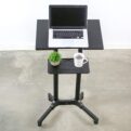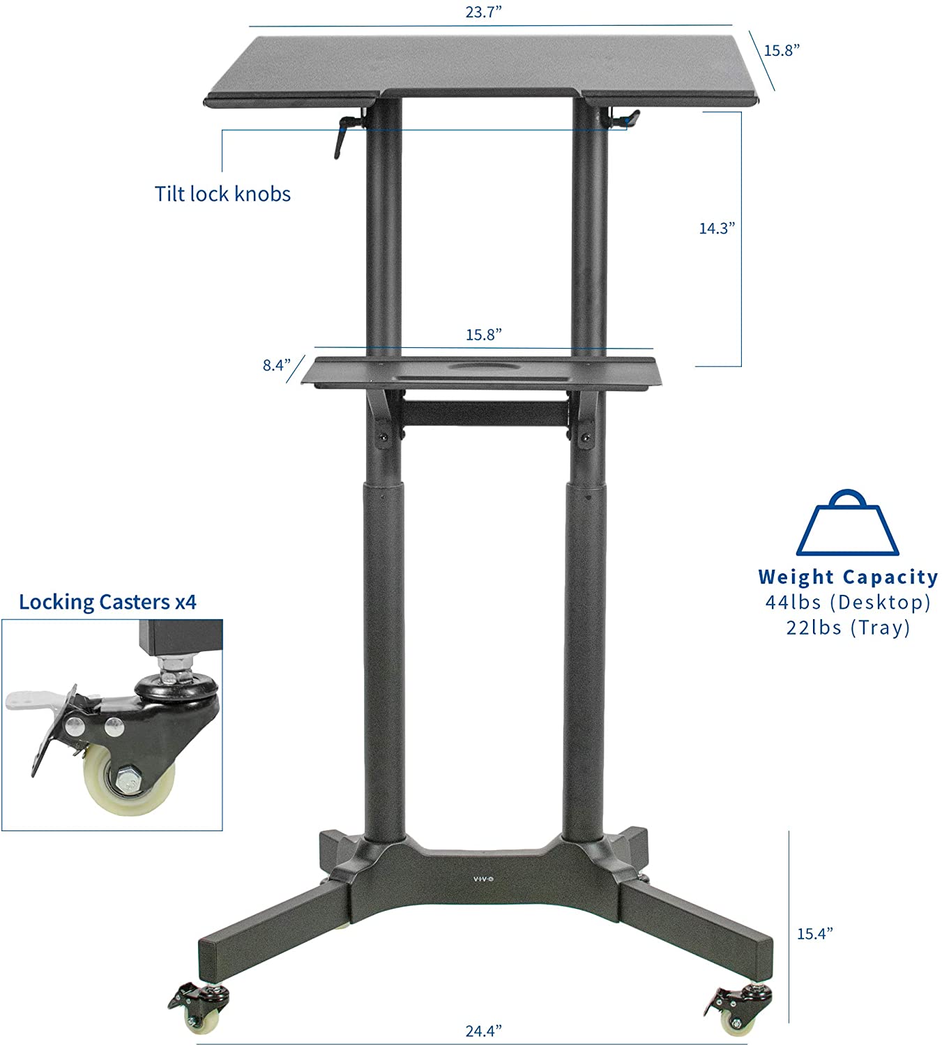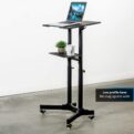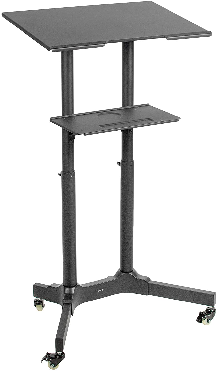 Take your adjustable podium or mobile laptop cart wherever you want to go with CART-V03E from VIVO! Four durable 3” casters provide quick and smooth mobility, and all are lockable for excellent stability when you want the cart to be stationary. Constructed of high-grade steel, this cart’s desktop is able to support up to 44 pounds, keeping your equipment safe and secure. Featuring over 8 inches of height adjustment, a space efficient tilting desktop, and a lower storage tray for small accessories, this cart is ready to roll. All of the necessary hardware and instructions are provided to get your workstation assembled in no time!