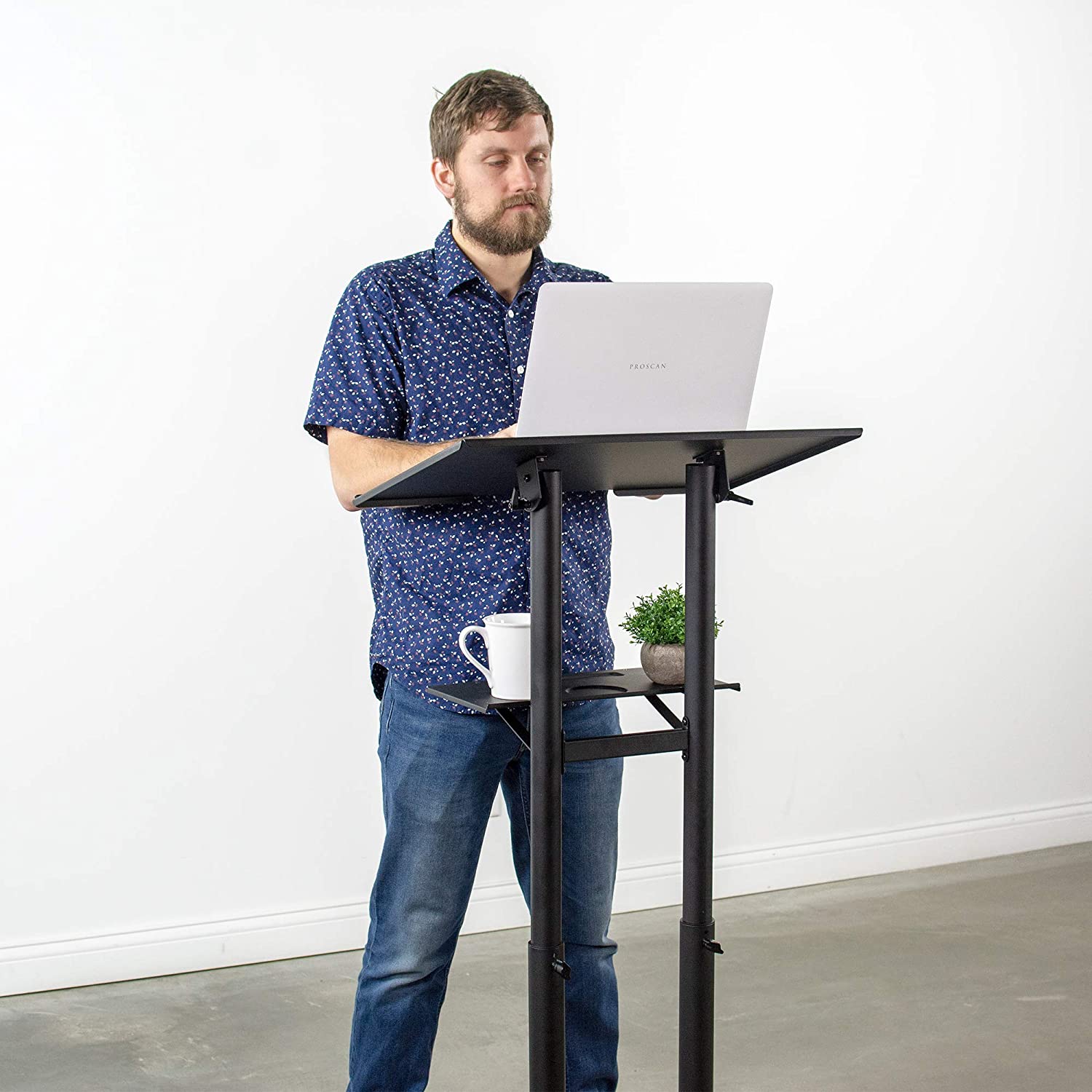 Take your workstation wherever you want to go with four heavy-duty casters designed for quick and smooth transport. All four casters are lockable to make the cart as mobile or stationary as desired. The back legs are designed to be low profile so you can place the podium close to the wall for easy storage.