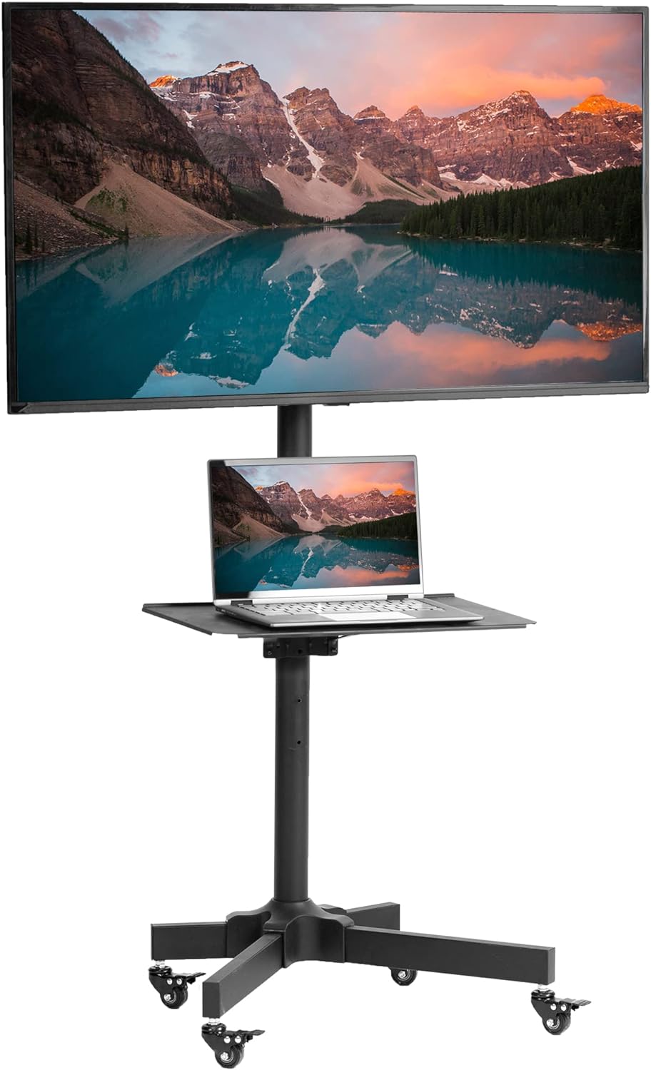 Height and TiltThis cart allows for height adjustment of both the TV and shelf. The mounting bracket features tilt for optimal viewing angles. |